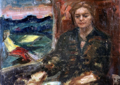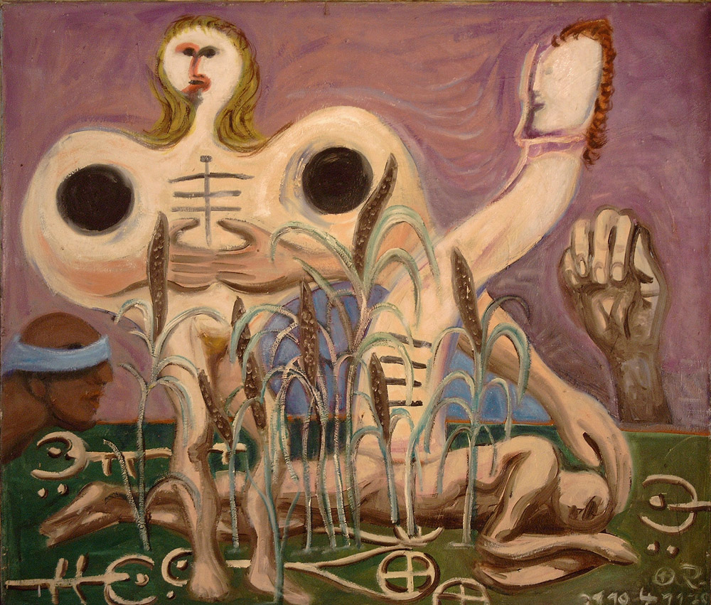 In 1966 Rudi Rothe suffers a serious traffic accident, which he survives only reduced and badly handicaped, and as a result of which his career breaks off. His painterly skills again help him to rebuild himself. New elements and a new colourfulness appear in his paintings; a naive-looking gesture can perhaps be interpreted in such a way that the painter now feels free from obligations and considerations of art-theoretical contexts and social expectations. But Rothe’s new style of painting also serves the existential necessity of understanding the world, of making sense of it, and of appeasing his own restlessness.